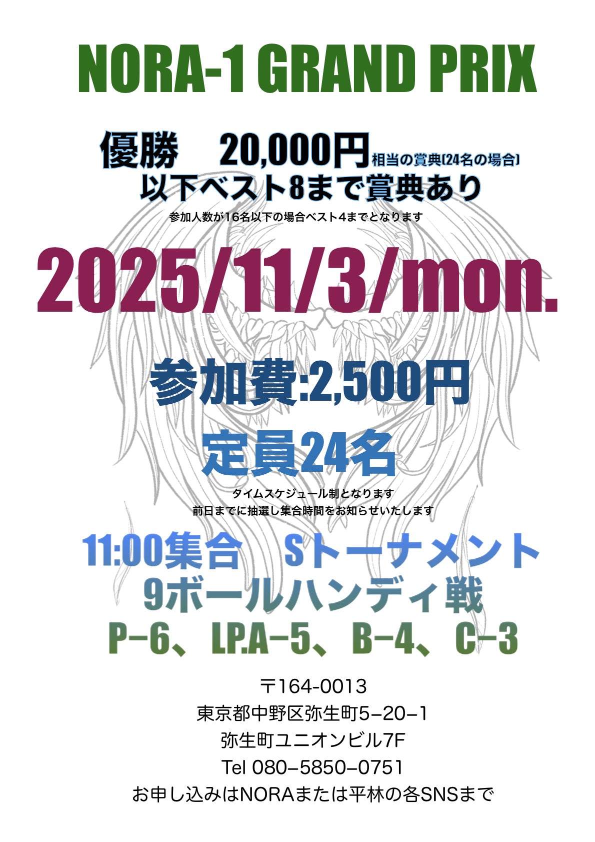 11月3日(月/祝)にNORA-1GPを開催致します。