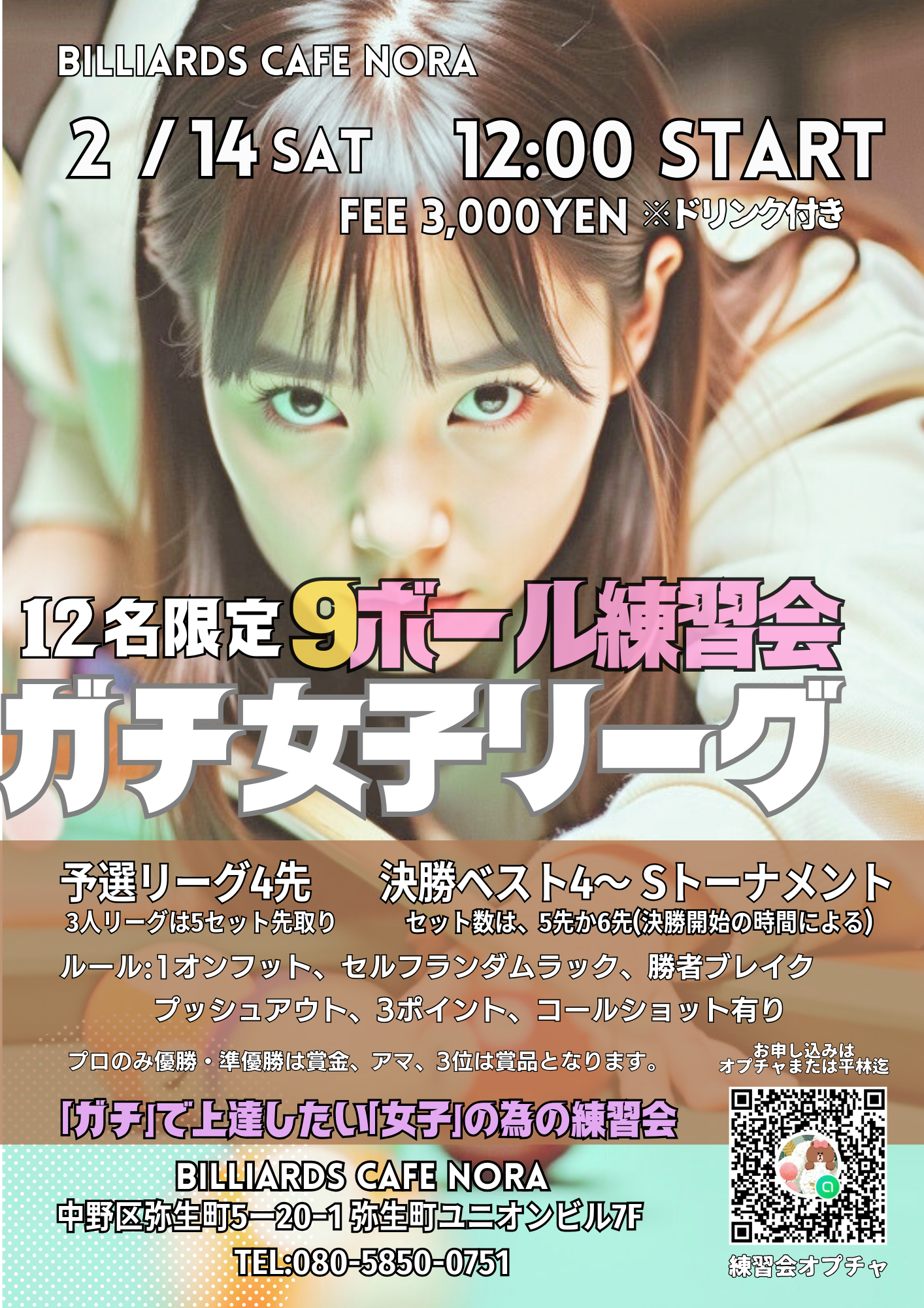 2月14日(土)ガチ女子リーグ開催のお知らせ